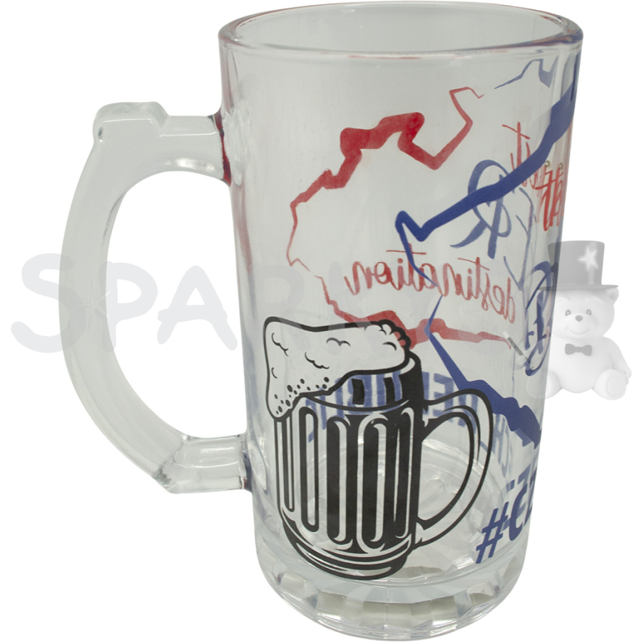 Tento půllitr je vyroben z čirého skla a nabízí praktický objem 500ml, což je ideální pro různé nápoje. Jeho klasický design s robustní uchopení dělá pití zábavnější a pohodlnější.