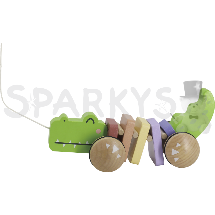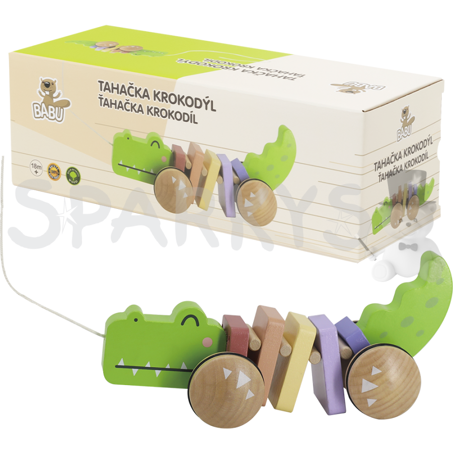 Krokodýl je vyroben z dřeva a je v živých barvách, které zaujmou všechny malé objevitele. Děti si s ním mohou hrát tím, že ho táhnou za sebou a tím rozvíjejí svoji motoriku. Krokodýl svým pohybem povzbudí děti k dalšímu prozkoumávání okolí.